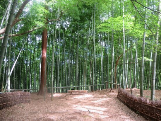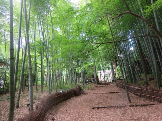 お寺から少し下ると 竹林 が。奥に竹で作られた鳥居。