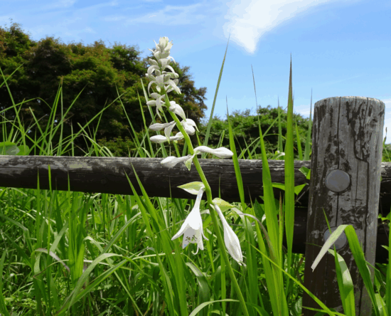 | 花は6月から8月に咲き、白色から薄く紫色を帯びる花を次々と咲かせる。 若葉は山菜として利用される。 |