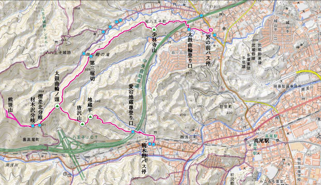 12:56唐沢山→13:11地藏平→13:50駒木野バス停