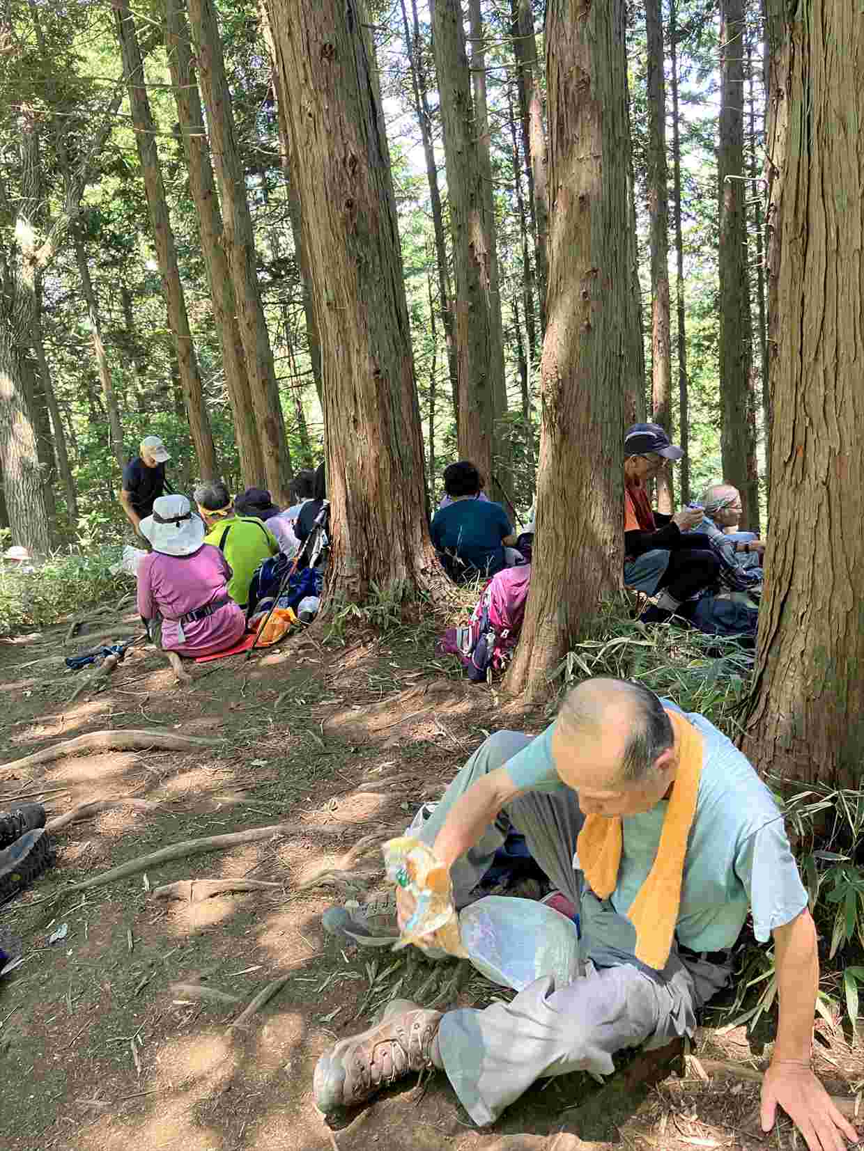 休憩の度に皆さんから飴やらゼリーをいただきそのパワーで元気よく登ることが出来ました。リーダーにいただいたパイナップルのカットは美味しかった。生き返りました。あの味は忘れられません。以上