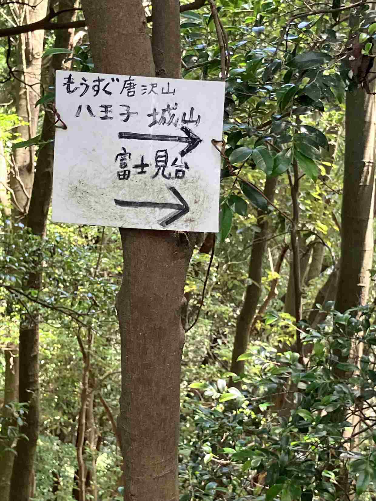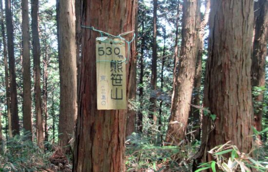 新しく木に括り付けてあり分かり易い。熊笹山の杉林の中でクールダウンをしながら