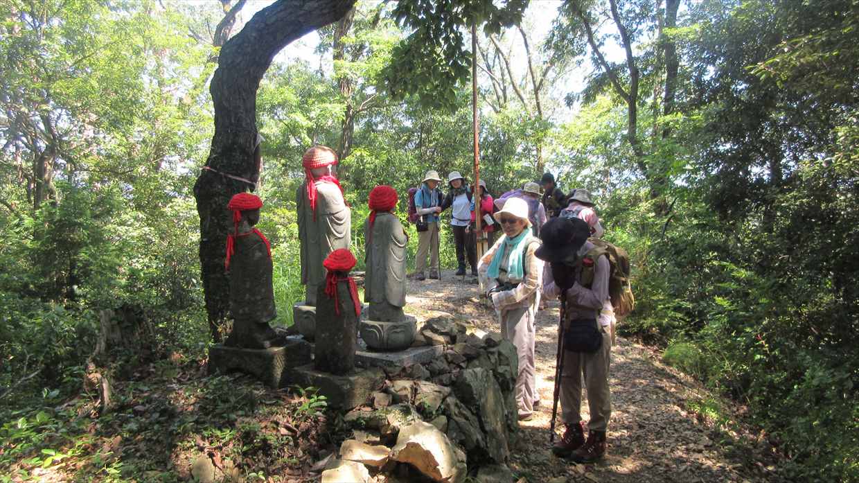 昔、駒木野の地域で流行病が広がったとき、小仏関所跡周辺の住民により、人々を守って欲しいとの願いを込めてお地蔵さんを担いで山に上げたそうです。この場所はもともと小田原城へ向けての狼煙場でした。現在も夏祭りには狼煙をあげています。夏祭りの際は、消防団とともに住民が山に登り、狼煙をあげお地蔵さんにお参りしています。