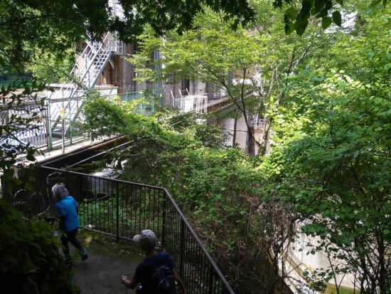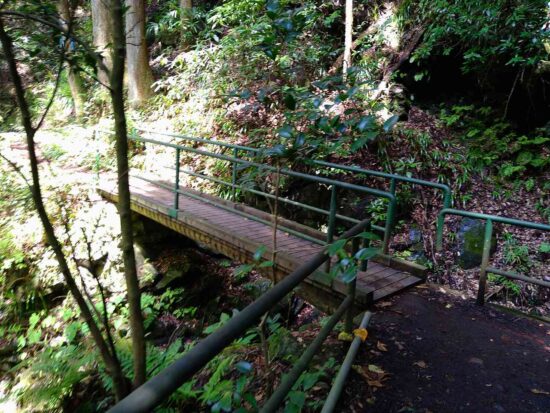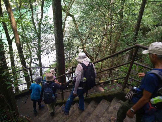 数馬峡にかかる数馬峡橋の下をくぐるために、急下降の石段を下ります。