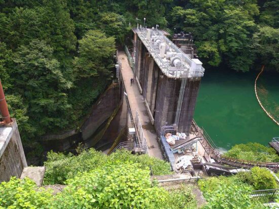 全国の数ある中でも最大級の魚道で、全長330m、落差27m、水流をジグザグにしてスイッチバックにしています。