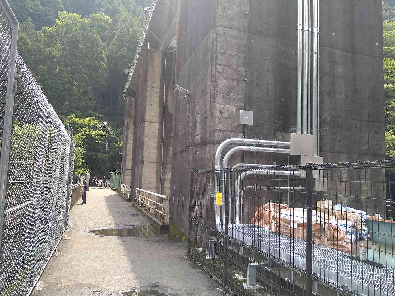 白丸重力式ダムを渡ります。東京都交通局に電源を送る多摩川第3発電所の調整池のダムです。