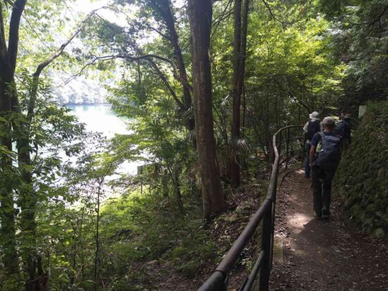橋の下流は白丸湖畔遊歩道になり、左側は白丸湖になりました。