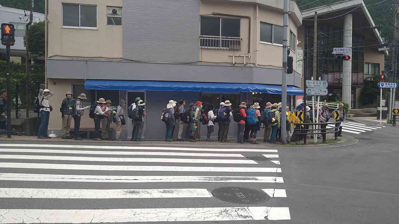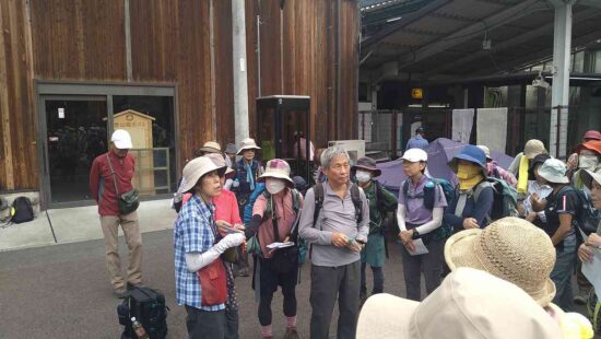 JR奥多摩駅で、リーダーから直近の山行で起きた熱中症の話がありました。