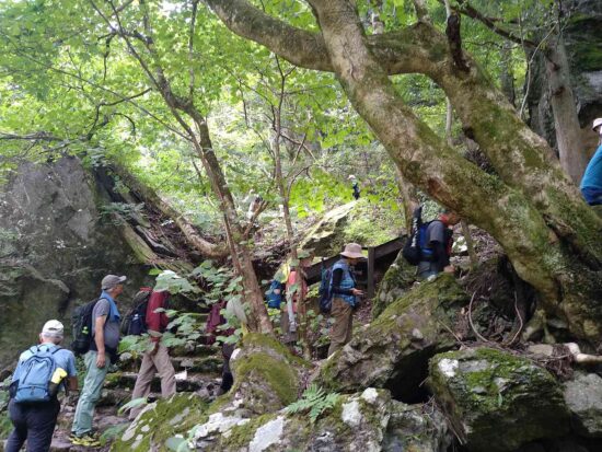 渓谷の岩ゴロは濡れて滑るので、登りは慎重に上がって行きます。