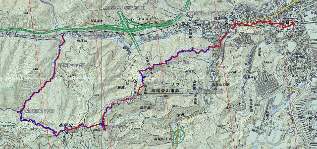 金毘羅台園地から「金毘羅台コース」に入り、甲州街道を経てJR高尾駅へ向かった。