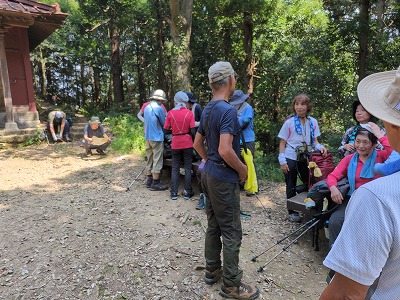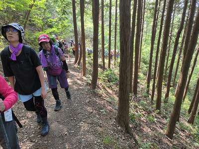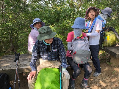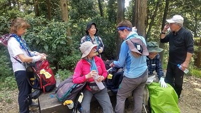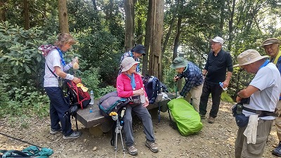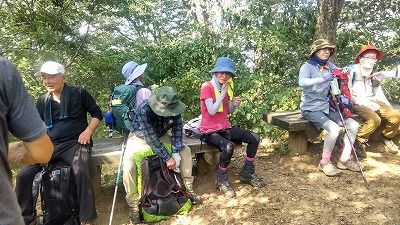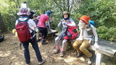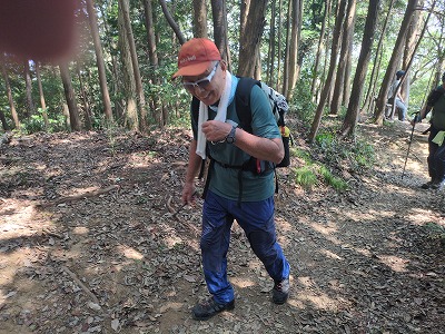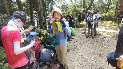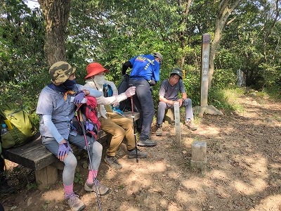 晃石山の頂上からのさくら峠までのアップダウンが長く、途中足釣りなどの(1名が謙信平でリタイア)けがも出て、又は中山の道を知っているという人がいて、また13名のうち2名の協力者がいるということでさくら峠での退出許可を出しました。