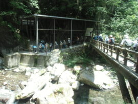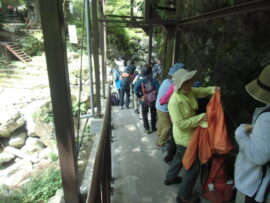 お世話になりました。かつて東日原には何度か山の途中で寄ったことがありましたが鍾乳洞に入ったことはなく今日は良い機会となりました。見学は60~80分程中は寒く体の芯まで冷え至福のひと時でした。この鍾乳洞は30万年程かけて出来たと言われています。水が滴り落ちる音、幻想的なライトアップなど時間を忘れてしまいそうでした。猛暑の中ひと時の涼を求め大勢の方に参加頂き有難うございました。お疲れ様でした。