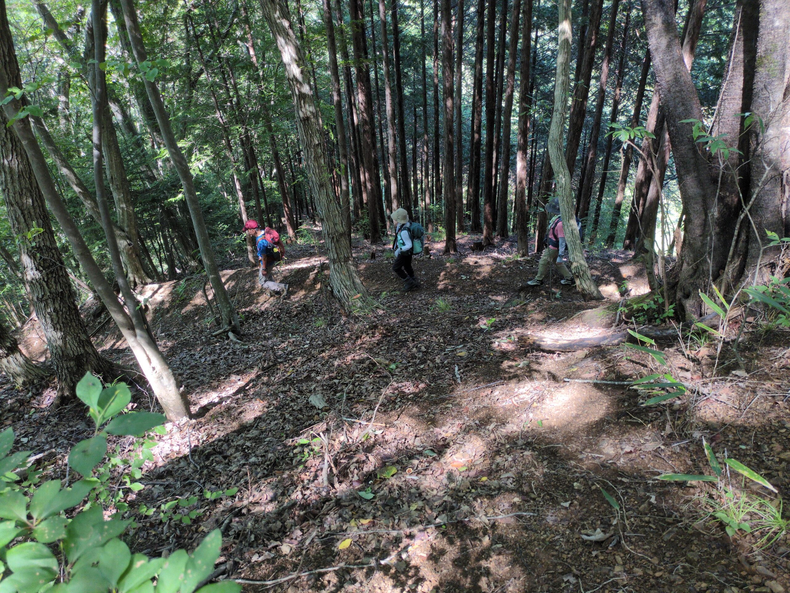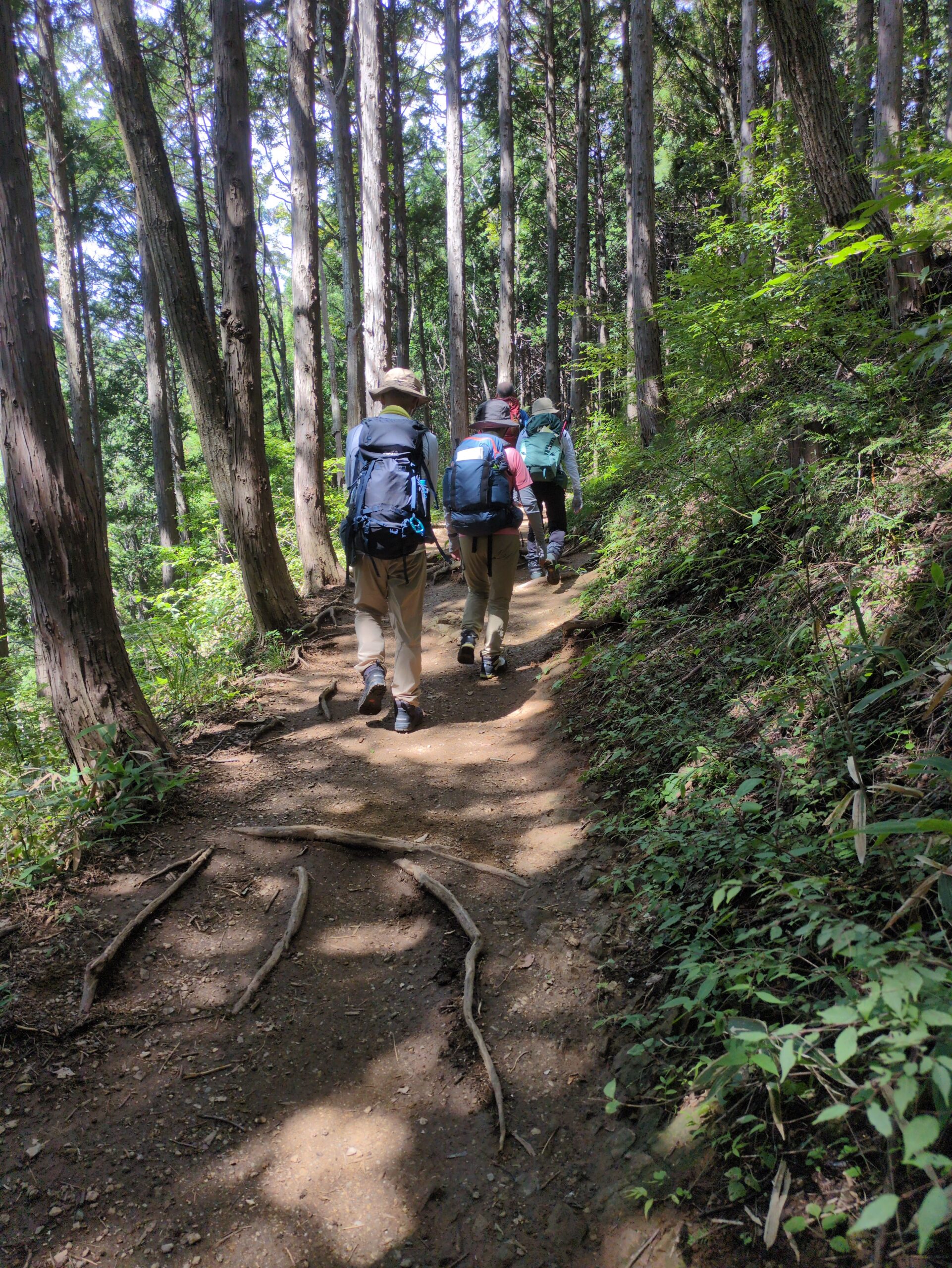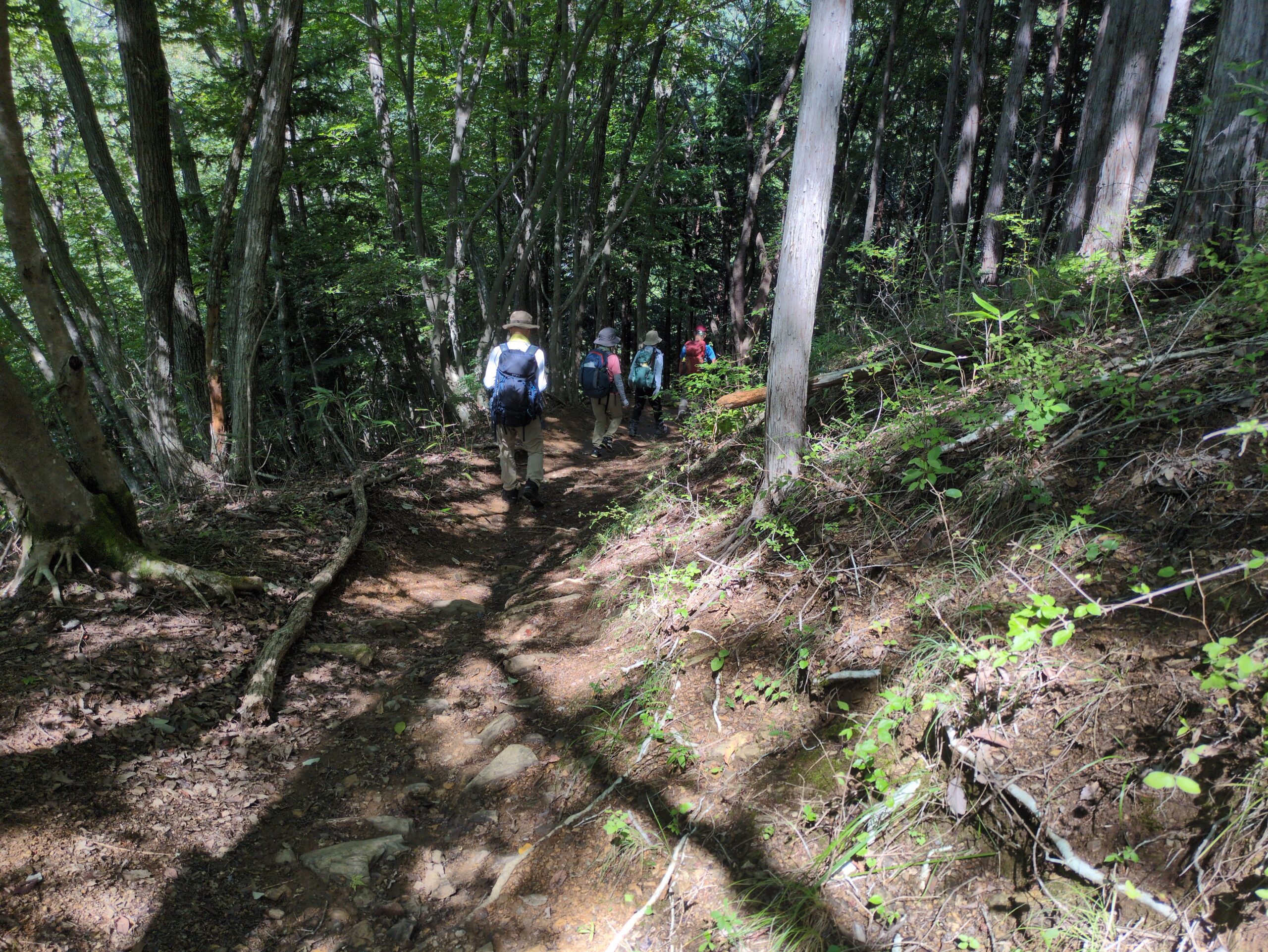 計画の際は意識しなかったけど、コースの多くが樹林帯であったこと、前日の大雨の影響?で時々爽やかな風に恵まれ、更に何よりは参加者全員が2,3人の力の強者であったことが重なり、予定歩程より1時間余り短縮してゴールした。参加者のしっ咤激励に答えたいと、必死に山行する日々です。