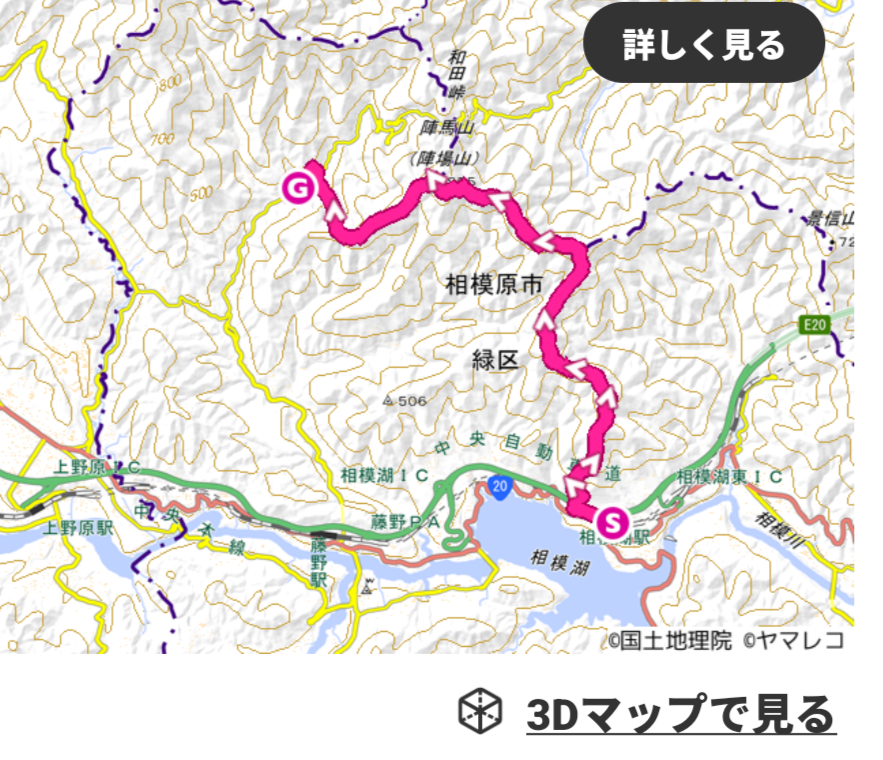 8時50分相模湖駅出発→9時05分予瀬神社→10時13分大平小屋→10時42分矢ノ音→11時17分明王峠(昼食)→11時58分奈良子峠→12時36分陣馬山山頂→13時20分和田バス停