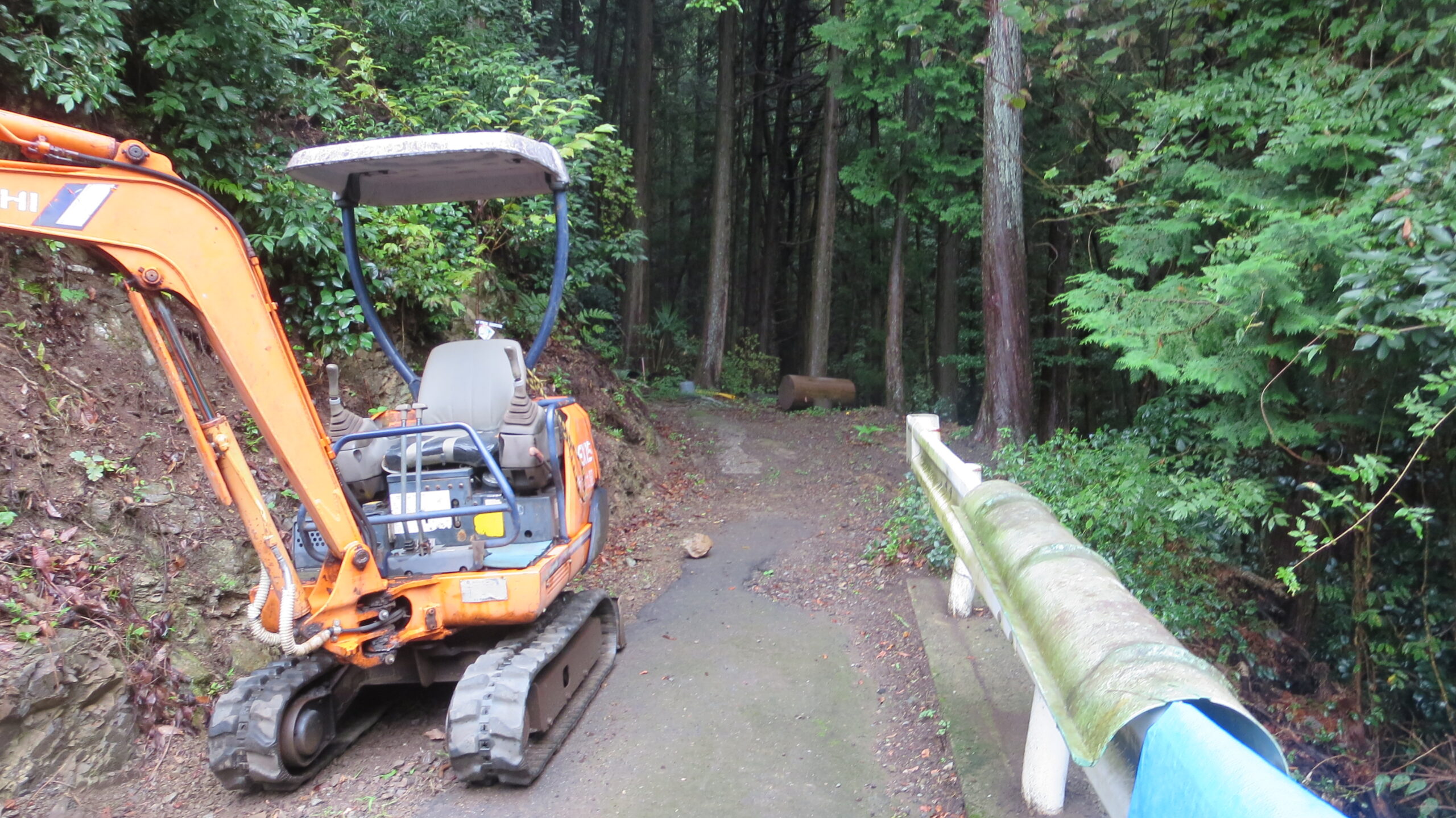 林道の入口左に民家あり。その前を奥に進む。