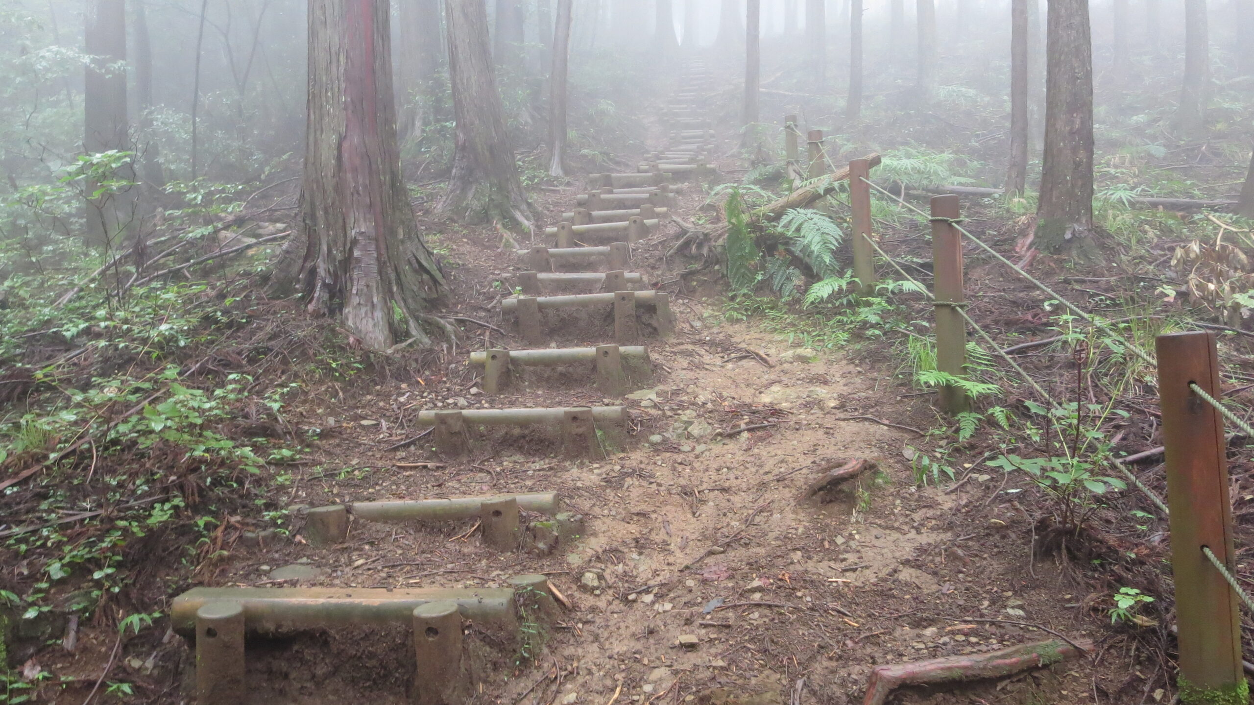 榎峠~の登山道に合流。待っていたのは階段道。