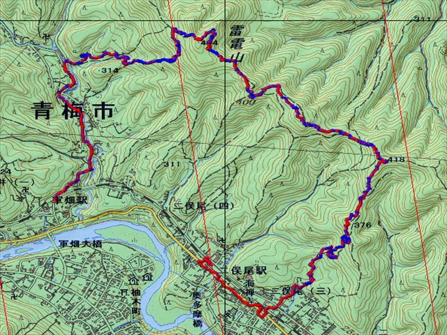 東京百名山「雷電山」。軍畑駅~青梅駅の北側を走る青梅丘陵の最高峰。大昔、ここで雨乞いをしたところ雷雨が生じたのが山名の由来とか。
