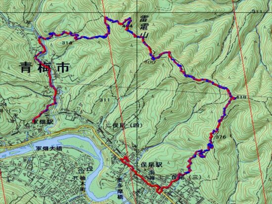 軍畑駅9時40分→平溝橋→雷電山→辛垣城跡雷電山口→辛垣山→辛垣城跡名郷峠口→名郷峠→物見山→桝形山→二俣尾駅14時