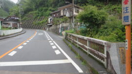軍畑駅下車。50m程戻り踏切を渡る。下畑軍畑線を北上。 平溝橋を渡り右の林道に入る。