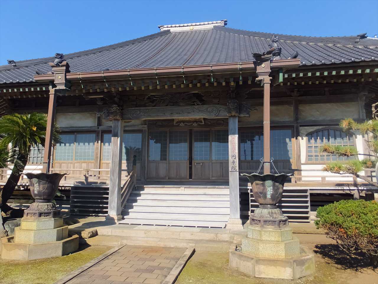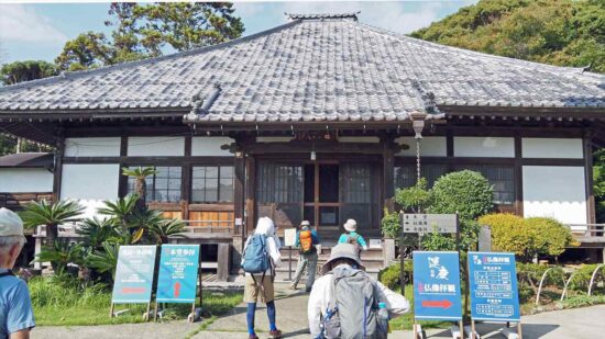 この寺で休憩。正慶元年(1,332)創建の真言宗の寺院。三浦の観音、不動尊の札所。毎年中秋の名月の日に「へちま加持」の行事が行われる。