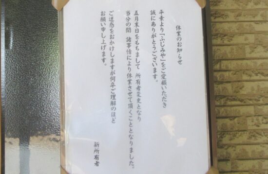 日和田山でおなじみの「ふじみや」さん 休業とのことです