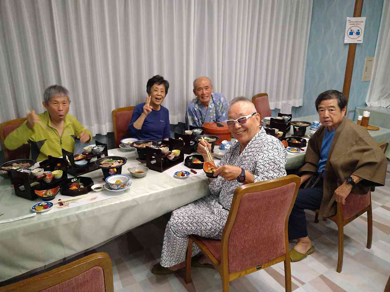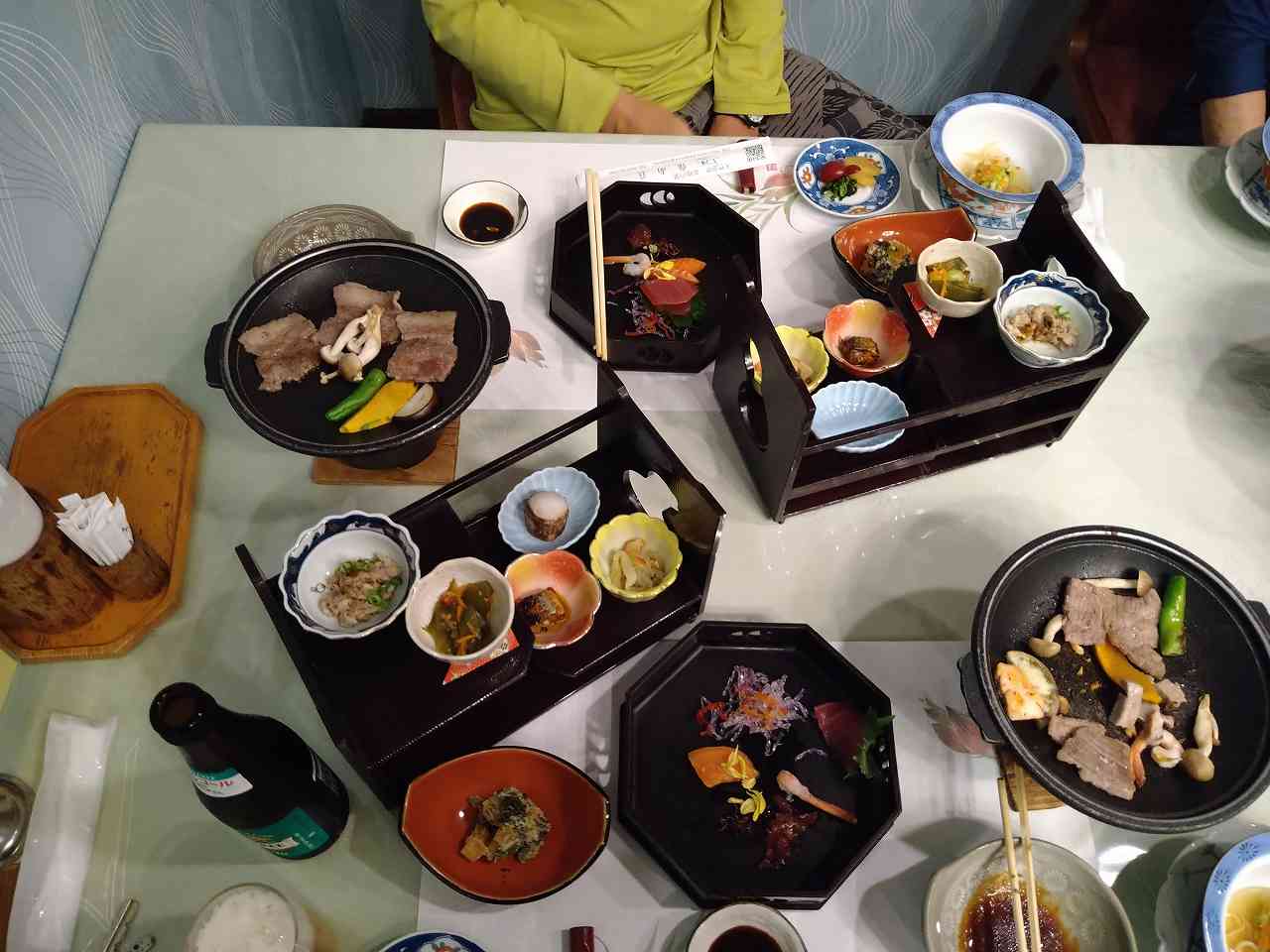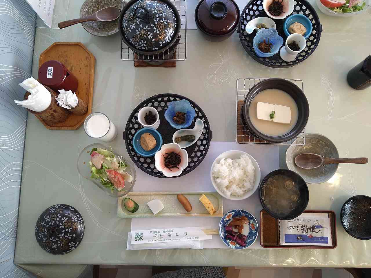 嶺南荘の朝食です。席に着くと焼きたての魚が配膳されます。