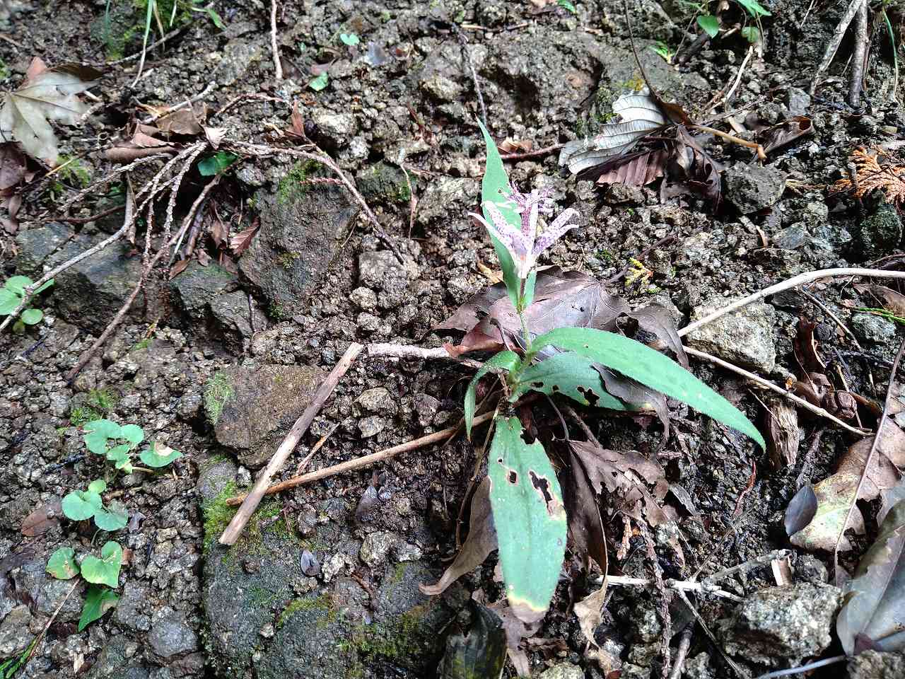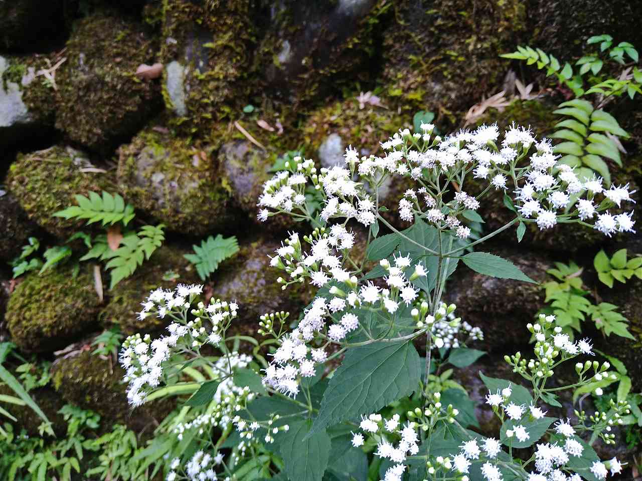 743mに上がると綺麗な花が咲いていました。小さな水滴が輝いていました
