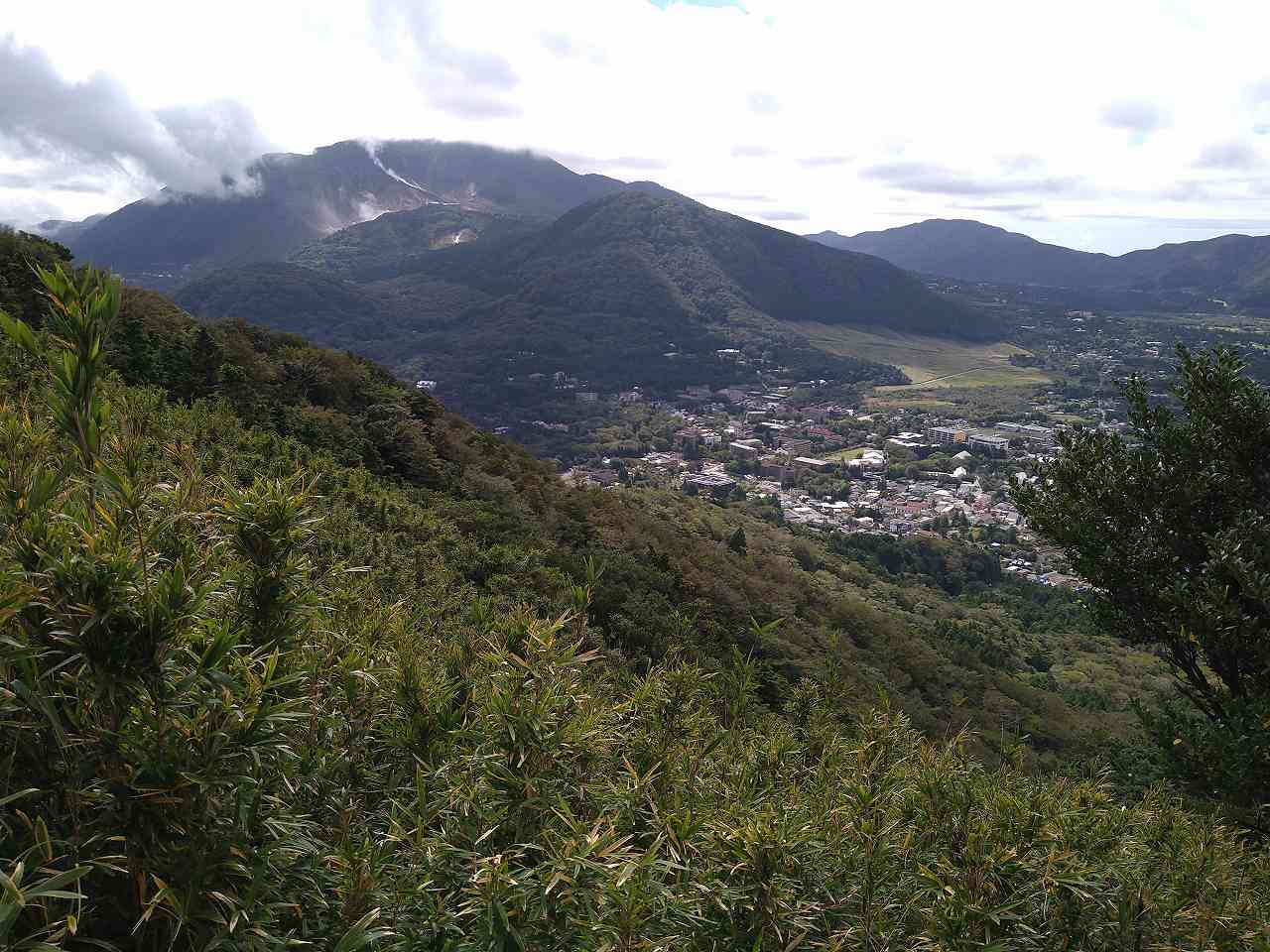 笹の登山道を登り上げ、開けた963mピーク着きました。ここから登ってきた仙石原が見渡せます