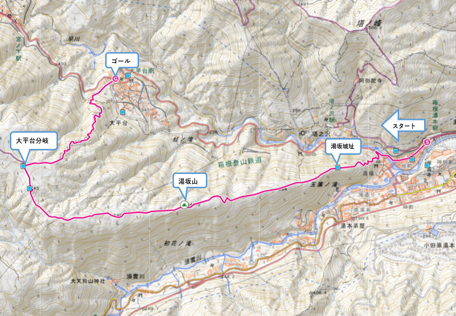 4日 : 箱根湯本駅9:10→湯坂山(546.8m峰)11:10/11:50(昼食)→大平台分岐12:40→宿13:30(泊)