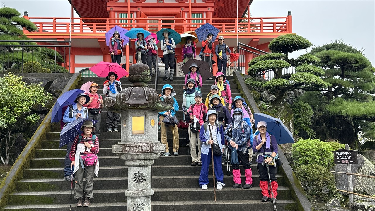 東ハイは登山の服装で望んだので、長い石段も、下りの岩も転ぶ事無く歩けました。リーダーの登りスロー下り早目と24人が全員遅れる事無く完歩。リーダーに見事でした。