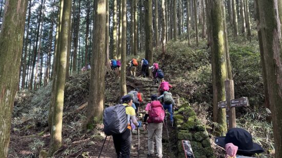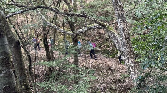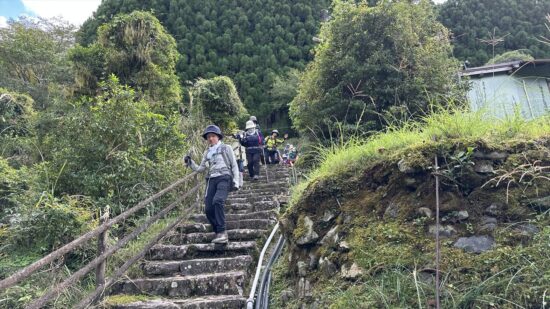 2日目は、熊野那智大社から小口までの古道歩き。ほとんどが石畳で歩きにくく、距離も長く、上り下りそれぞれ1,000m以上と、思っていた以上に時間のかかるコースでした。下山途中で、石につまずいて転倒された方がいらっしゃいましたが、幸い軽い打撲で済み、大事に至らずほっとしました。