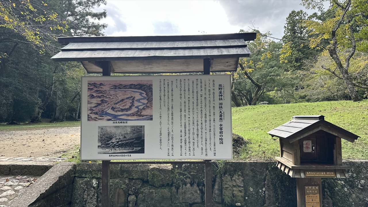 入口にそびえる大鳥居の壮大さにも圧倒されましたが、ここはもともと熊野本宮大社が鎮座していた場所。明治期の熊野川の氾濫により大半が流失し、残った上四社が現在の本宮大社へ遷されたとのことです。