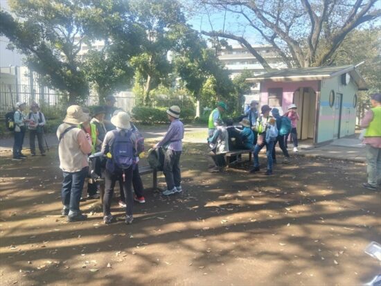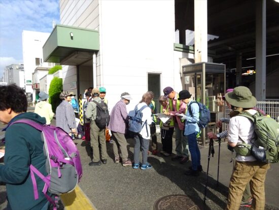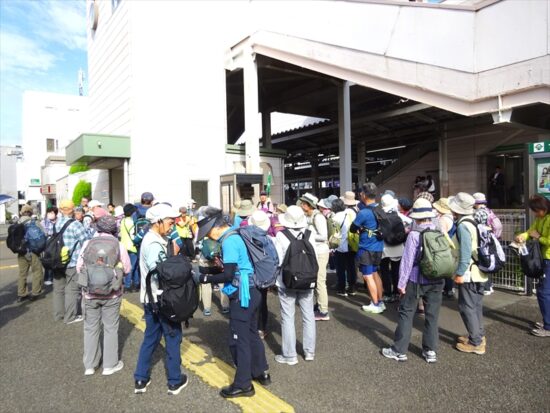 出発前、リーダー挨拶の後、コース説明・歩く際の注意事項・協力リーダーの紹介など。