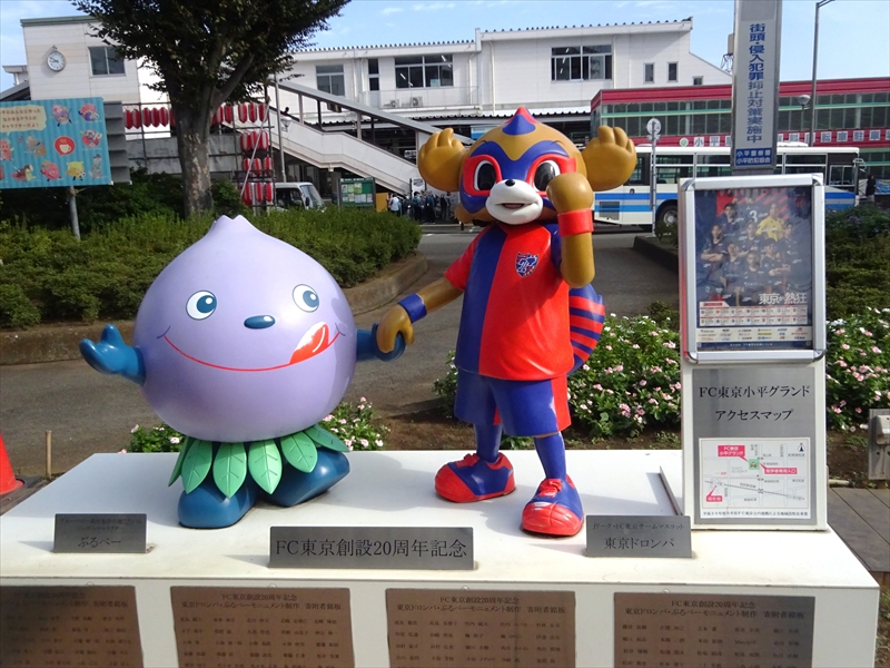 「東京ドロンパ」・小平駅南口にある、Jリーグ FC東京チームのマスコットです。