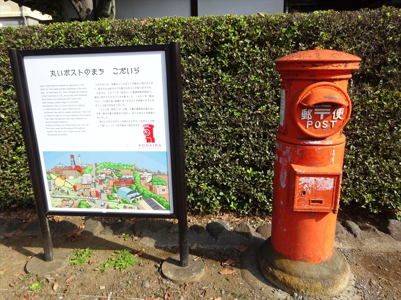 「丸いポストのまち こだいら」 とあります。昔なつかい丸ぽすとが多く残されています。