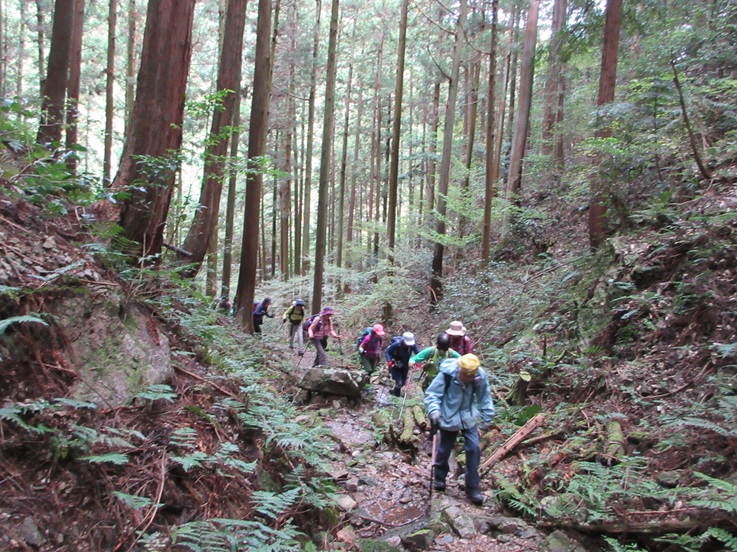 杉の根があったり、ザレたりしていて、転びやすいところもありましたが、みなさん注意して無事に歩いていただきました