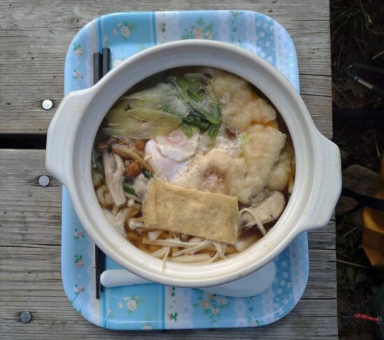 鍋割山荘名物の鍋割焼きうどんで舌鼓。物価高で2000円に値上げ・・