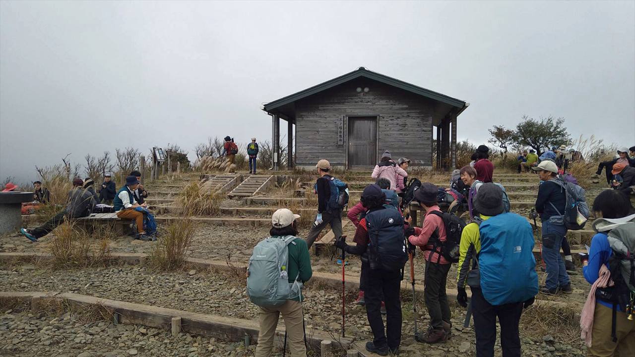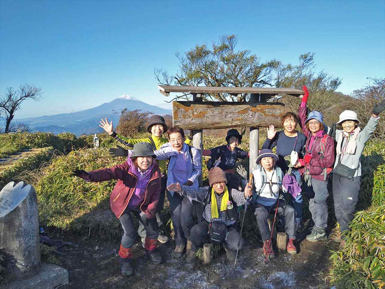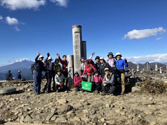 丹沢山から9:20戻る 前日と打って変わって今日は、晴れ。塔ノ岳で集合写真