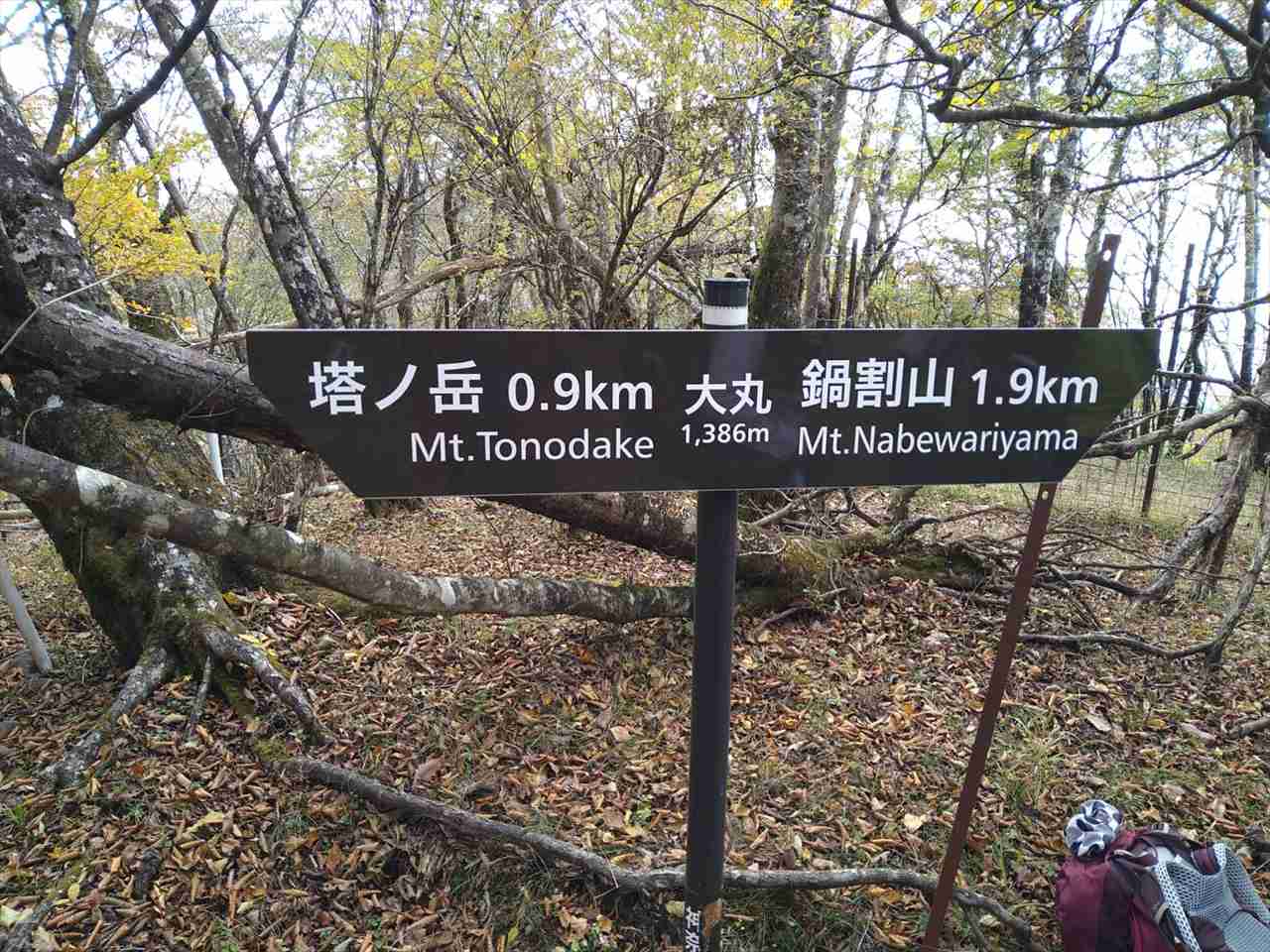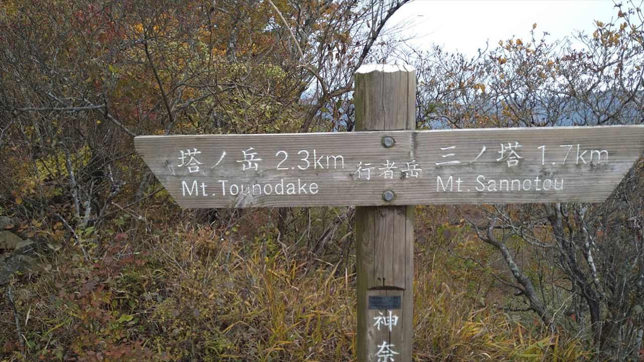 小田急線秦野駅=ヤビツ峠バス停8:45→表尾根登山口9:26→三ノ塔10:37→烏尾山11:43→行者岳12:18→13:15政次郎の頭(昼食)13:30→新大日13:58→15:05塔ノ岳(尊仏山荘(泊))