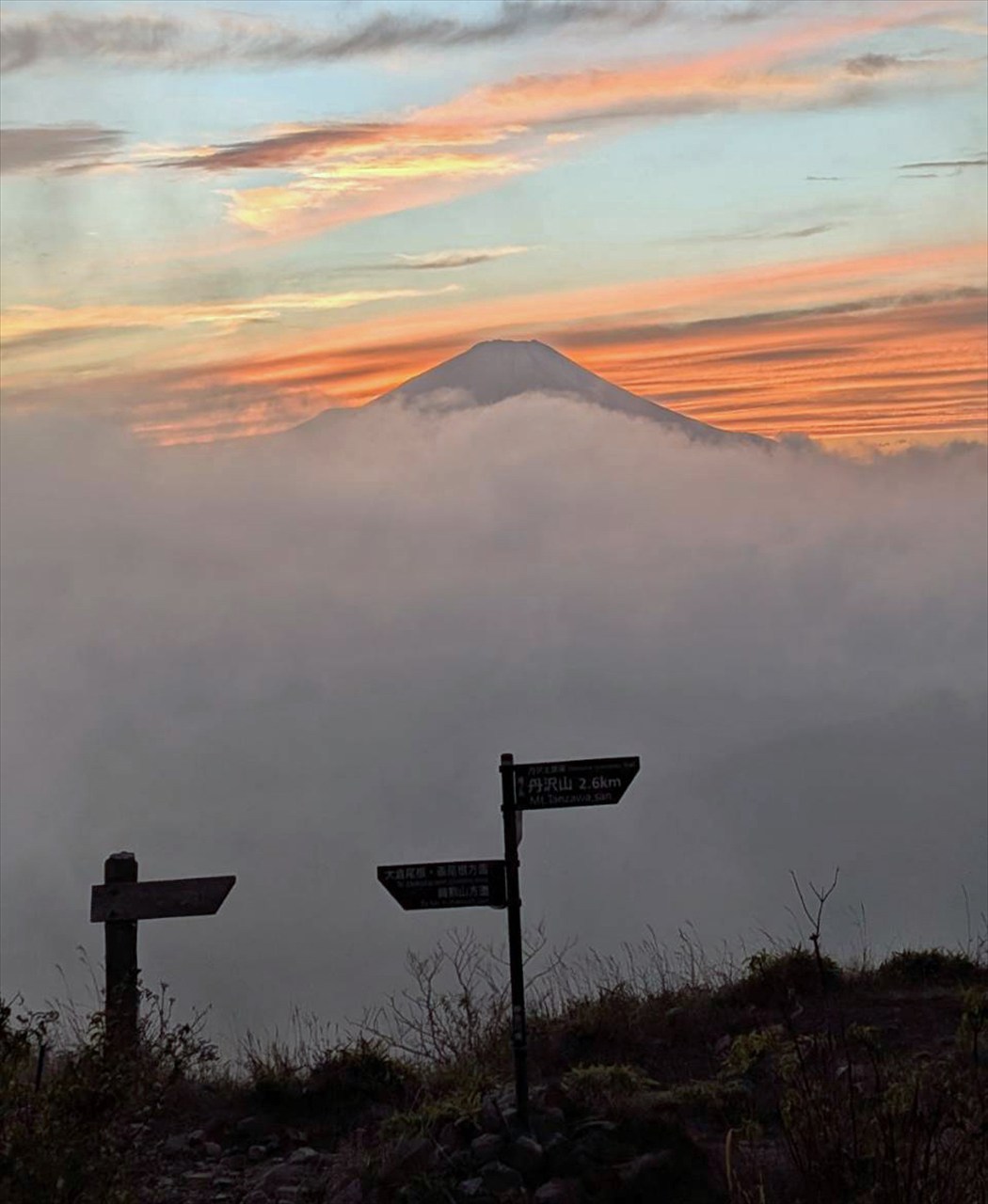 夕焼け小焼け 霧が取れて日没寸前に富士山が忽然と姿を現した❕塔ノ岳より