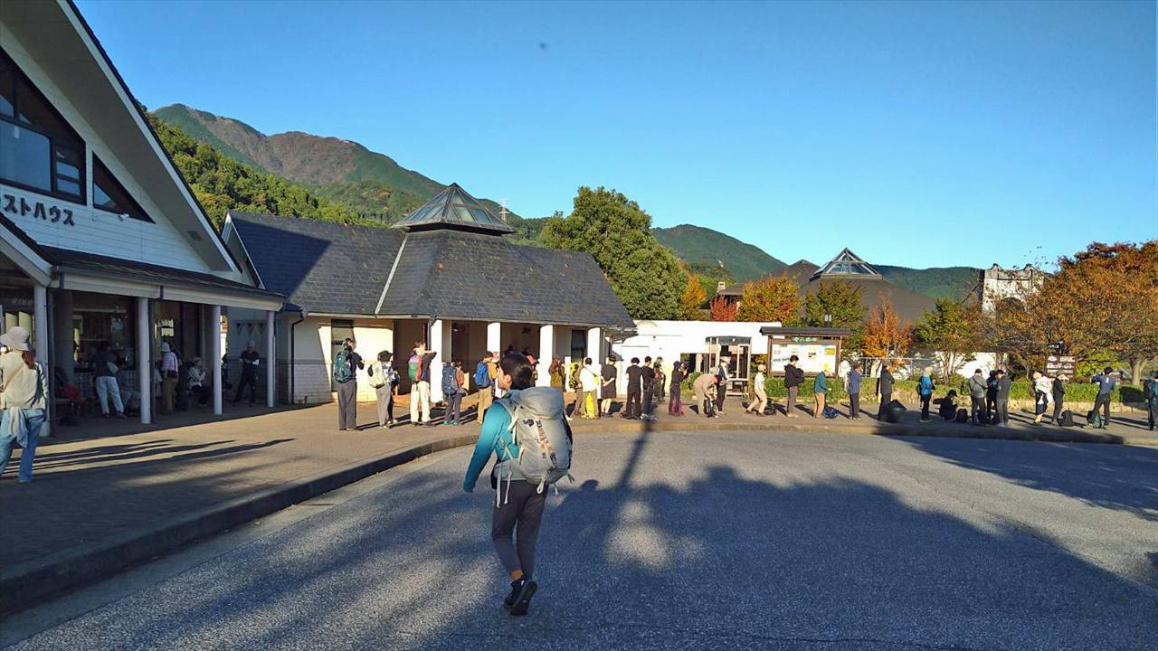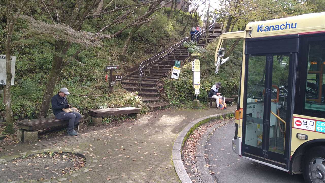 連休中日 ヤビツ峠行のバス停には長蛇の列です。 増発便が4台出ていて 分散して乗り込みました。熊 情報のビラが配られていましたが?鈴を鳴らして出発します。