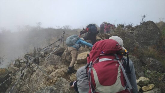 山頂は名物の鍋焼きうどんを目当ての登山者で大賑わいです。昼食に充分に時間を摂り、最後の急降下を慎重に後沢乗越に下る。
