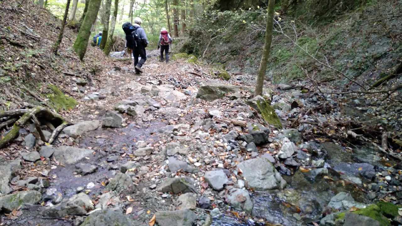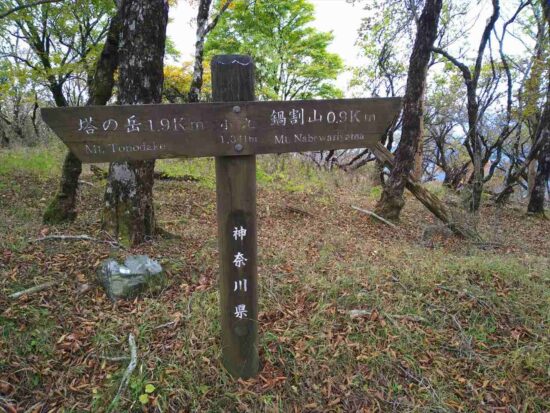 尊仏山荘9:40→金冷シ9:56→大丸10:10→小丸10:40→11:08鍋割山11:55→後沢乗越1300→二俣13:55→大倉バス停15:30(解散)