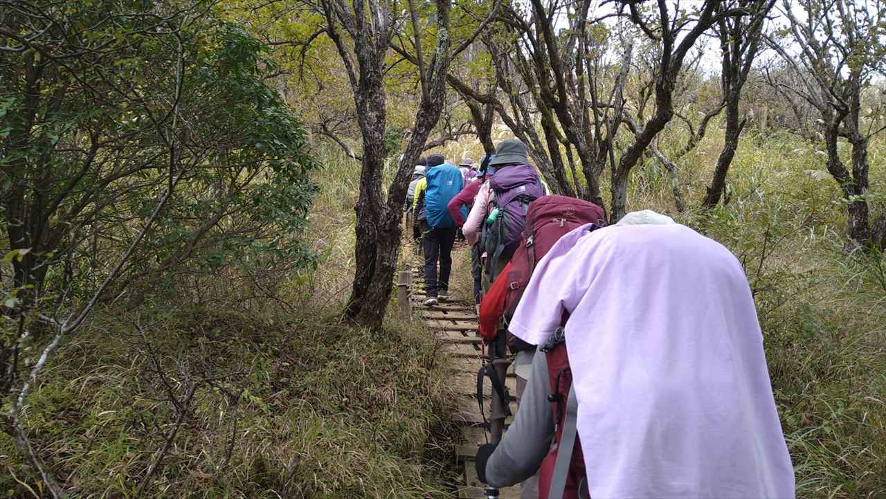 全員揃い鍋割山に出発です。金冷シ からの大丸 小丸の鍋割山稜は緩やかなアップダウンの尾根歩き 見頃の紅葉を楽しみながら鍋割山に向かう。