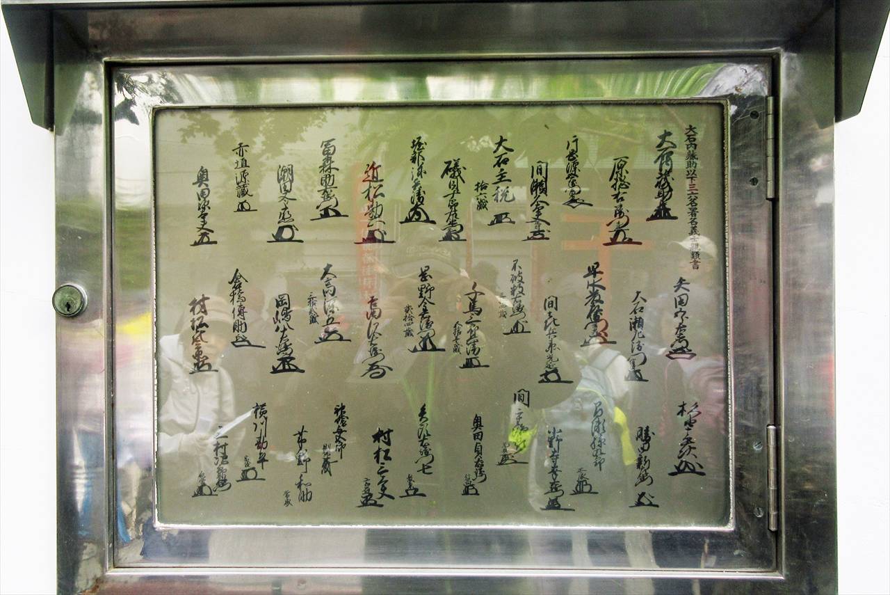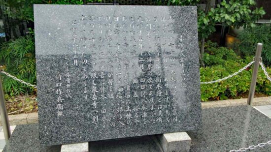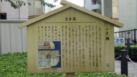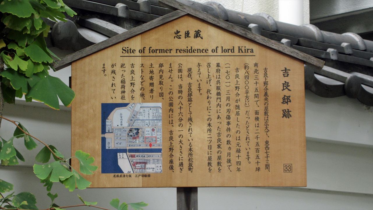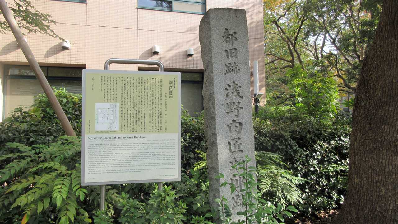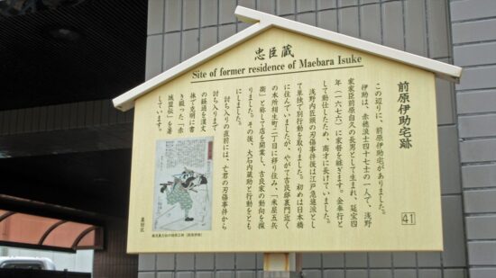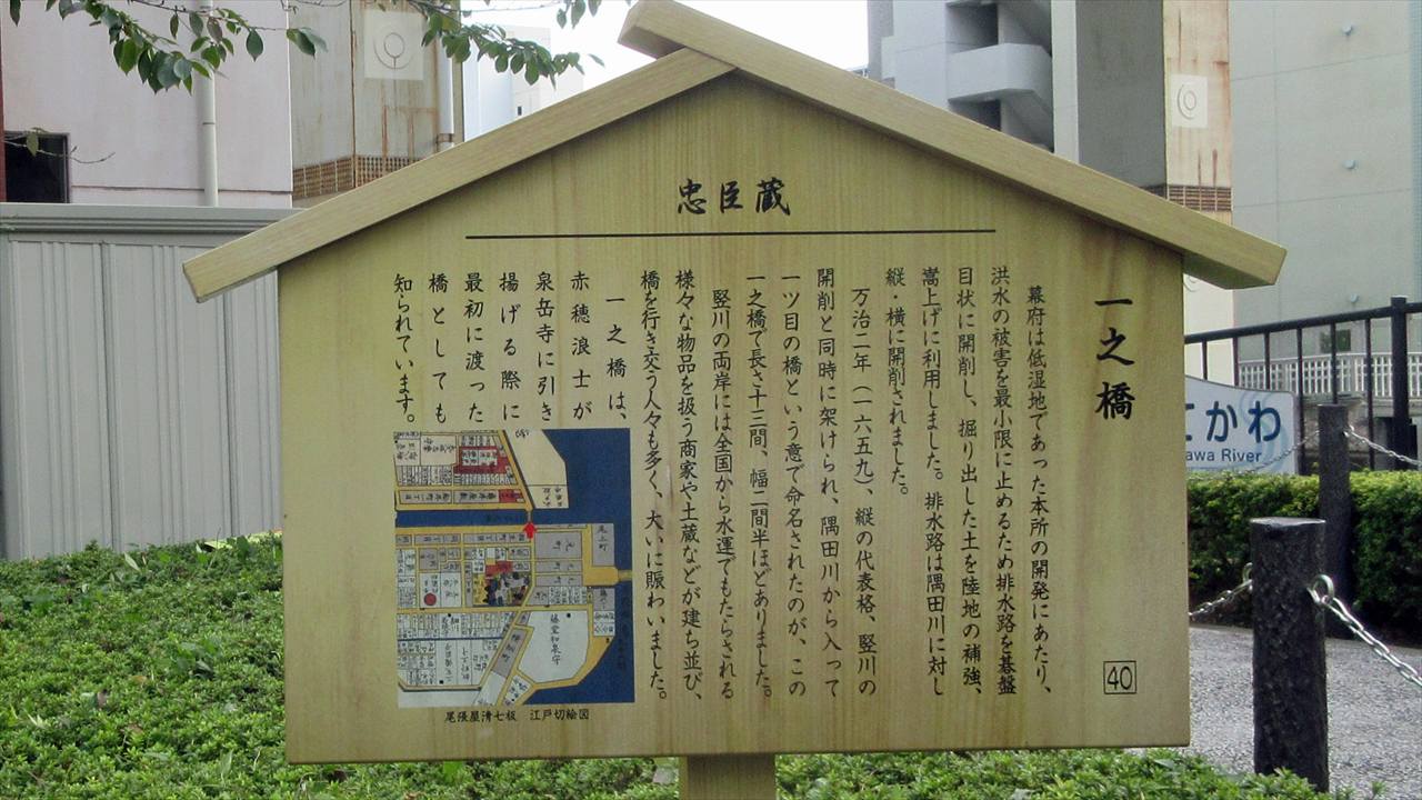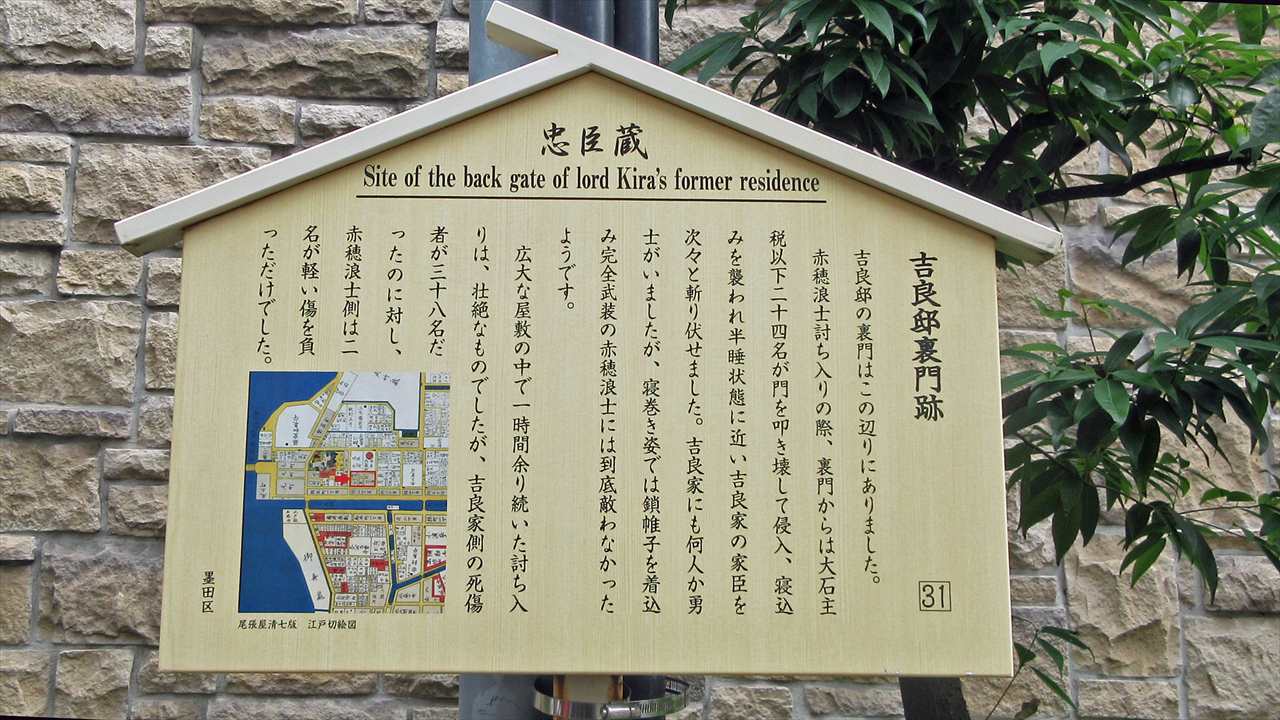 ・忠臣蔵で有名な赤穂浪士四十七士が討ち入りの後、乳熊屋(現在のちくま味噌)に立ち寄って休息を取った記念の碑。この休息後に高輪泉岳寺に四十七士は向かった。