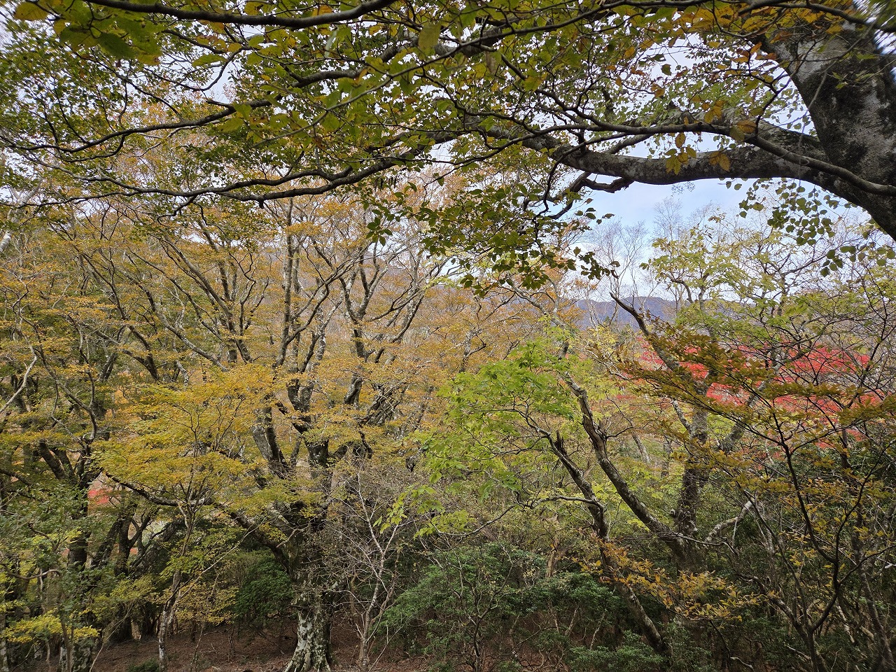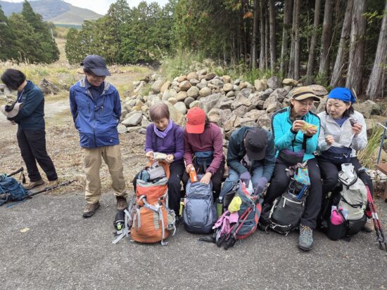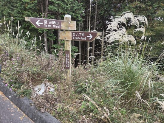 ▼コース:八丁池口バス停9:50着・10時歩行開始→三筋山分岐→12:20展望所手前(食事)