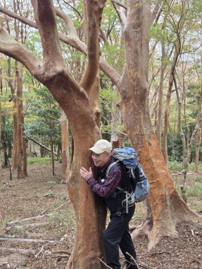 協力者清水さんが 「ヒメシャラ」と戯れる