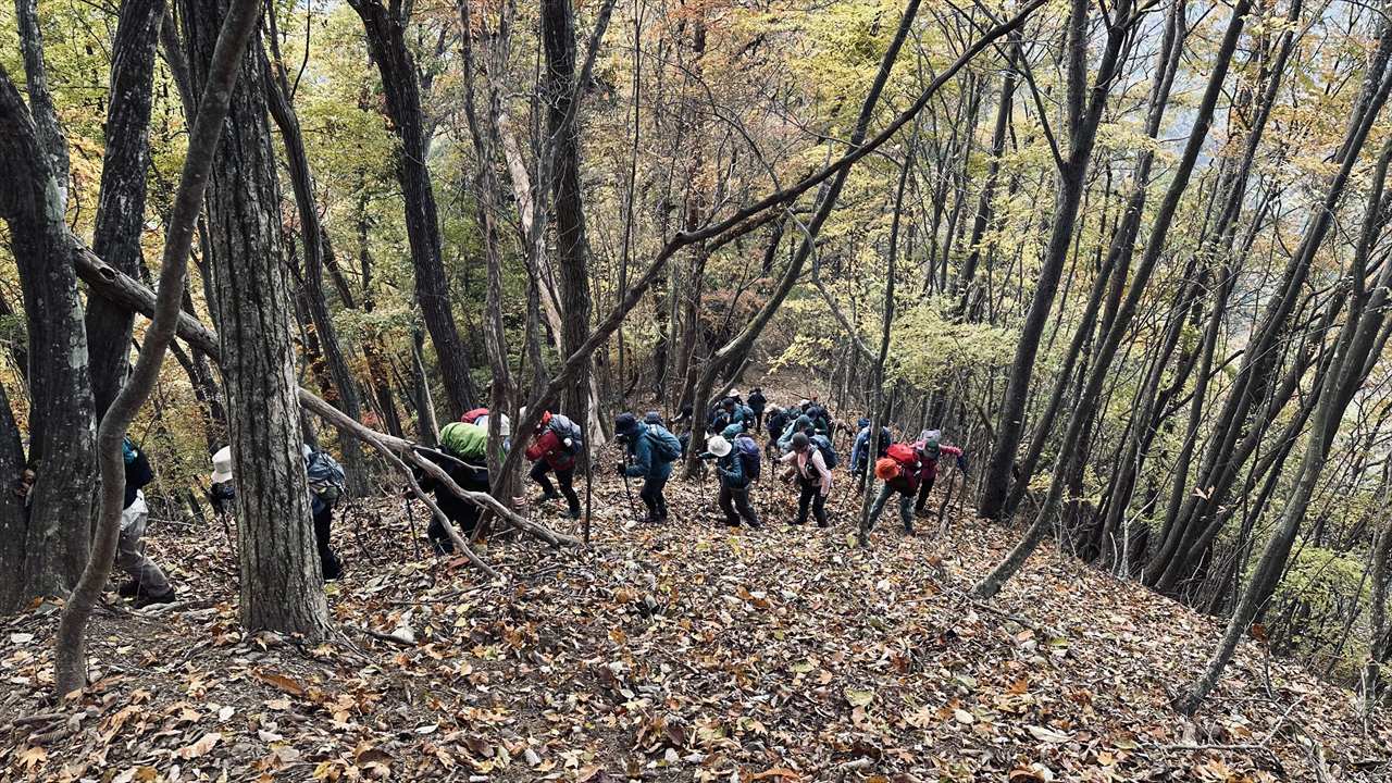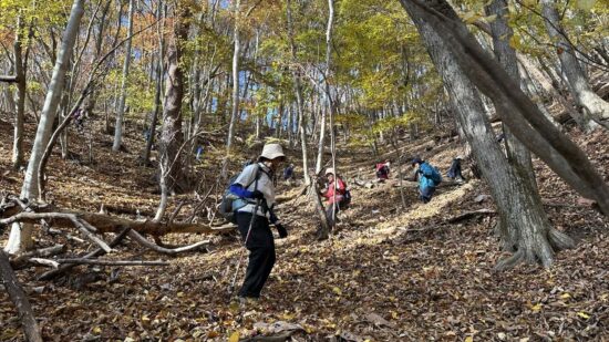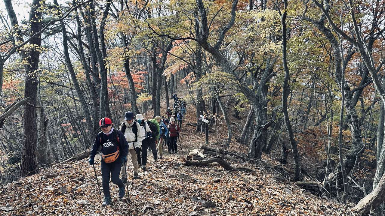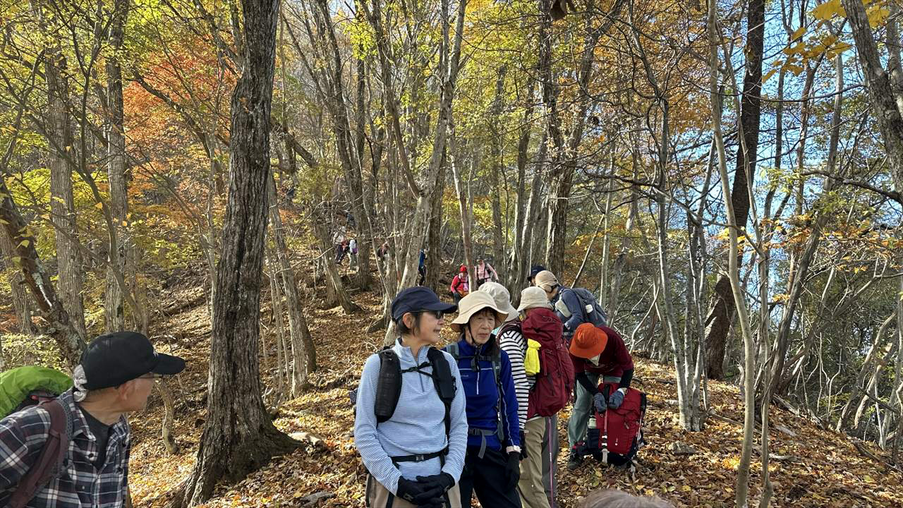 今回のコースは行程が長いため、本来は日が長い10月に実施する予定でしたが、せっかくなら紅葉も楽しめる時期にと思い、11月と入れ替えました。日没までに下山できるか心配していましたが、無事に明るいうちに鳥沢駅へ到着。しかし、高尾駅へ向かう電車の中ではすっかり辺りが暗くなり、秋の日の短さを改めて実感しました。