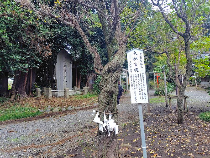 前田利家が植樹した「大納言梅」。他にも数々文化財がある神社です。