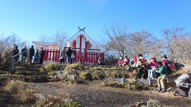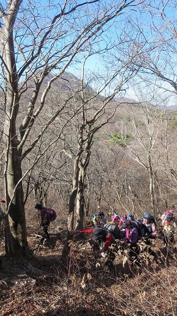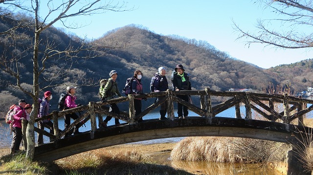 リーダーコメント:快晴とこの時期にしては暖かい気温は予報以上でした。紅葉はすでに終わり葉の落ちた樹林の中からは独特のボコボコした山容が見られて快適でしたが、二日間とも上りも下りも急で皆で注意の声掛けしながら歩いた。両山ともハイカーが多く人気さが伺えた。余談ですが、昭和の大女優、高峰三枝子さんはこの榛名湖畔を舞台にした名曲「湖畔の宿」を大平洋戦争中に慰問で歌ったそうです。目を閉じ、直立不動で聴く若い兵士たち。後に、彼らが特攻兵だったと知らされ高峰さんは衝撃を受けたそうです。
