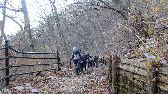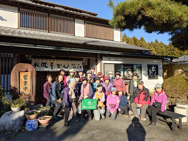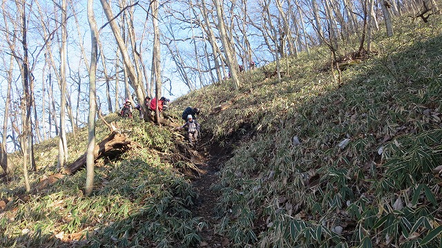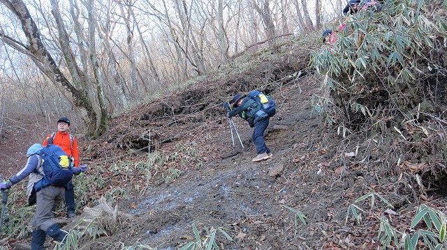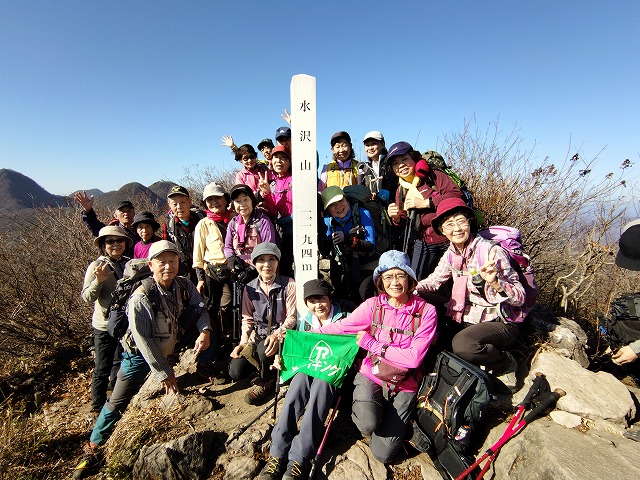 加藤様。忘年山行には大変お世話になりました。両山共に、あのように歩きづらいとは思いませんでした。榛名富士上りはロープウェイ組に分かれて登りました。下山は傾斜と荒れた道に時間を取られました。反省点はロープウェイ組を早く下山させるべきでした。水沢山は、電波塔過ぎたあたりから傾斜もきつく細くなりましたが、補助ロープに助かりました。水沢観音で時間を取れなかったのは残念でした。好天気と展望。緊張感のあるコース。適度な距離は良かった思いました。加藤様にはもの足りなかったと思います。一方、忘年山行はもう少し軽くと言う声もありました。結果として、怪我等トラブルなく終えられて感謝です。ホットした後のビールと水沢うどんの食感も良かったと思います。お世話になりました。また、ありがとうございました。佐々木保